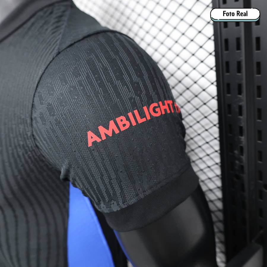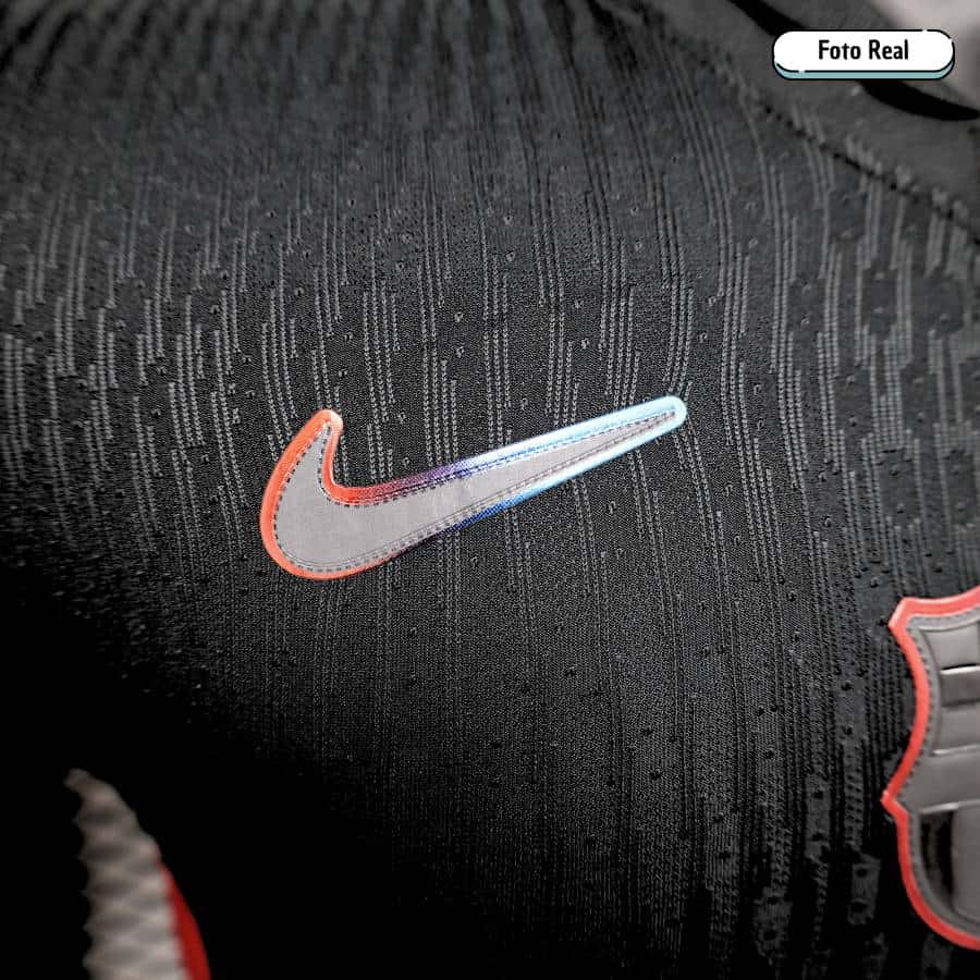 Camiseta Barça segunda equipación versión Player. Ajuste ceñido, tejido profesional y personalización oficial. Hecha para el máximo rendimiento.